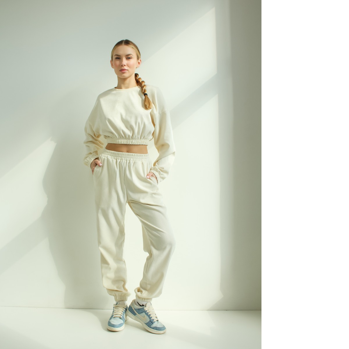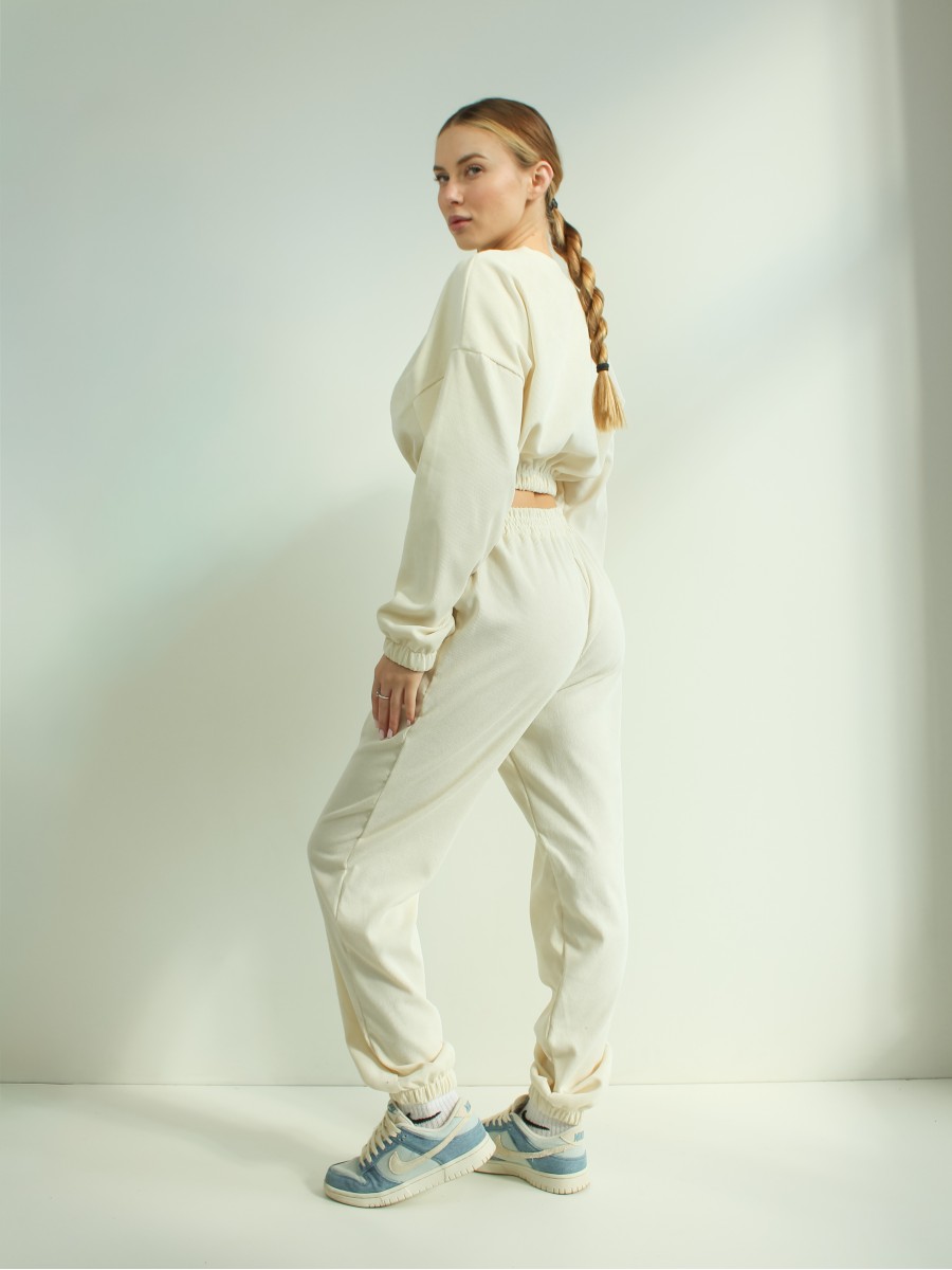 Костюм з мікровельвету — це стиль та елегантність у кожній деталі. Виготовлений з високоякісного мікровельвету, цей костюм дарує комфорт і тепло, підкреслюючи жіночність і витонченість. Молочний колір додає розкоші та універсальності, роблячи його ідеальним для будь-якої події — від повсякденних прогулянок до вечірніх виходів. Завдяки сучасному крою, костюм виглядає стильно і модно, поєднуючи елегантність і комфорт. Легко комбінується з різними аксесуарами, що дозволяє створювати безліч варіантів образів.
