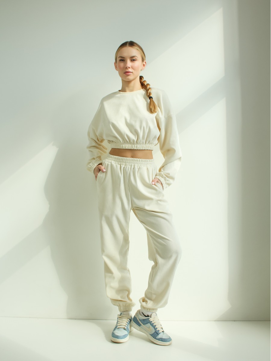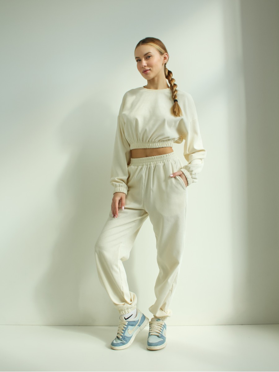 Костюм жіночий мікровельвет молочний 10058
