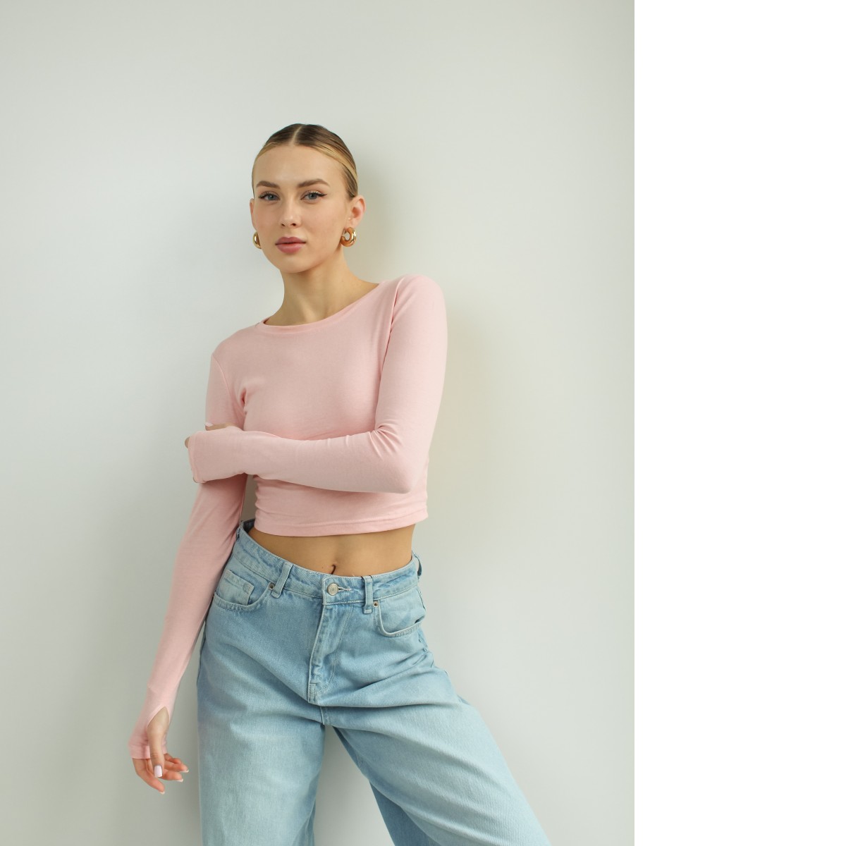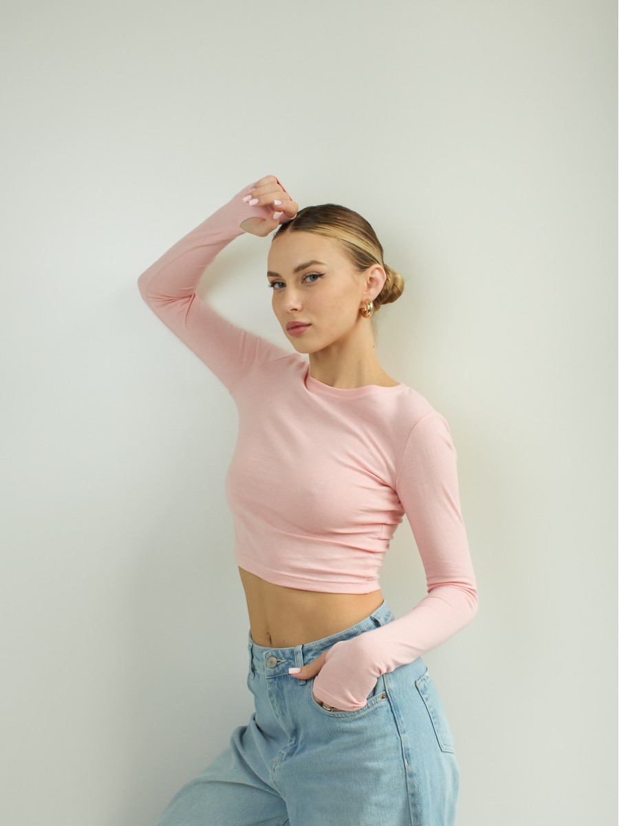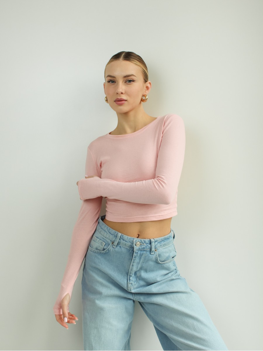Лонгслів з вирізом під палець з куліру персиковий 10357