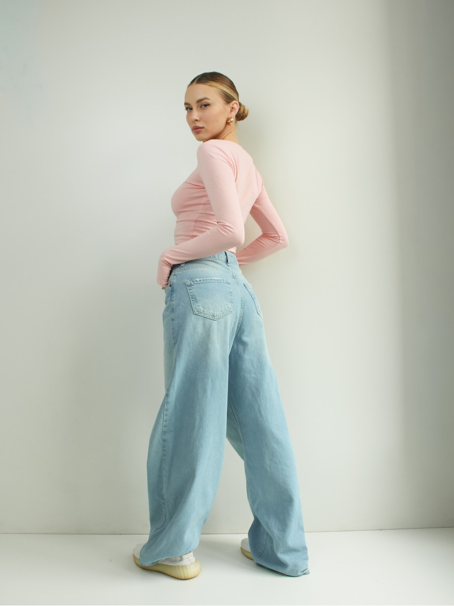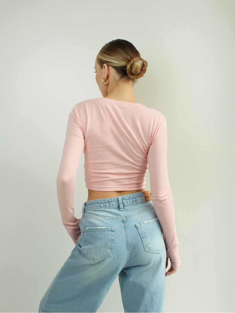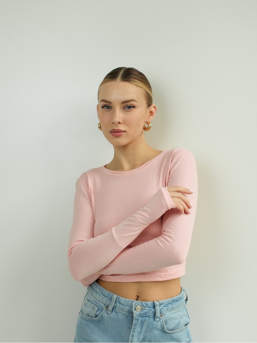 Лонгслів з вирізом під палець з куліру персиковий 10357