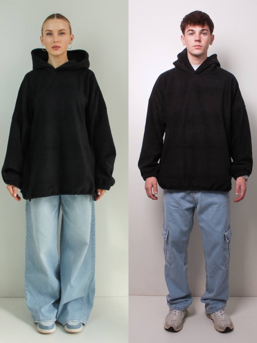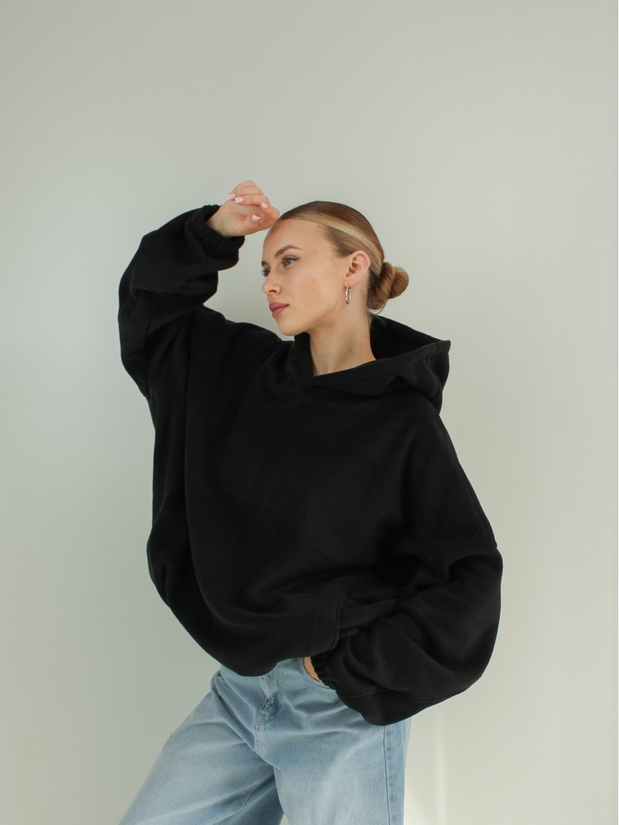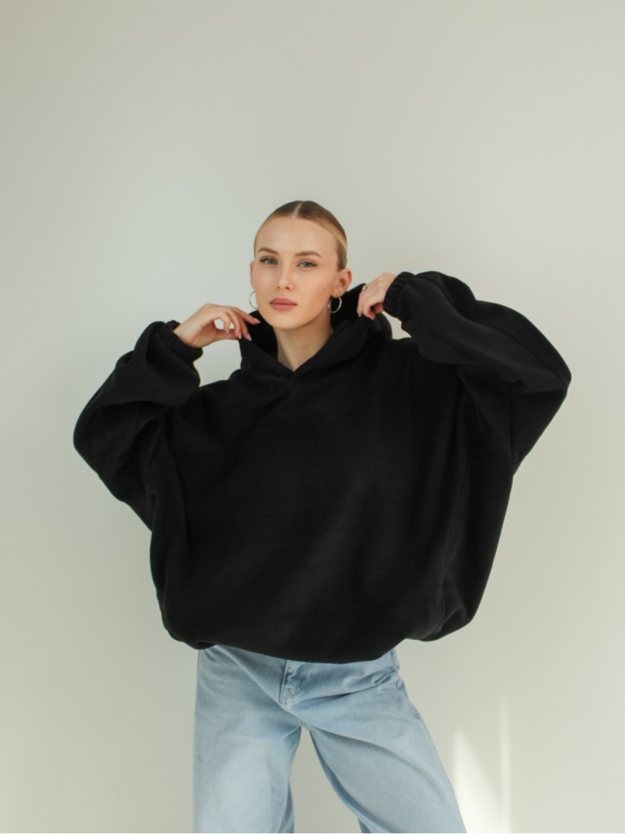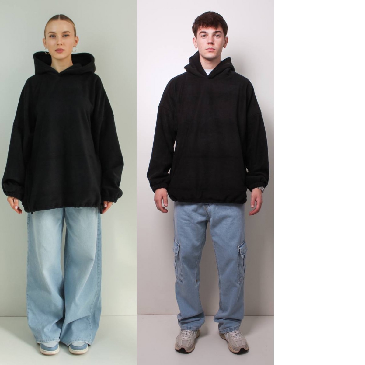 Худі унісекс оверсайз фліс чорний ONE SIZE 10024