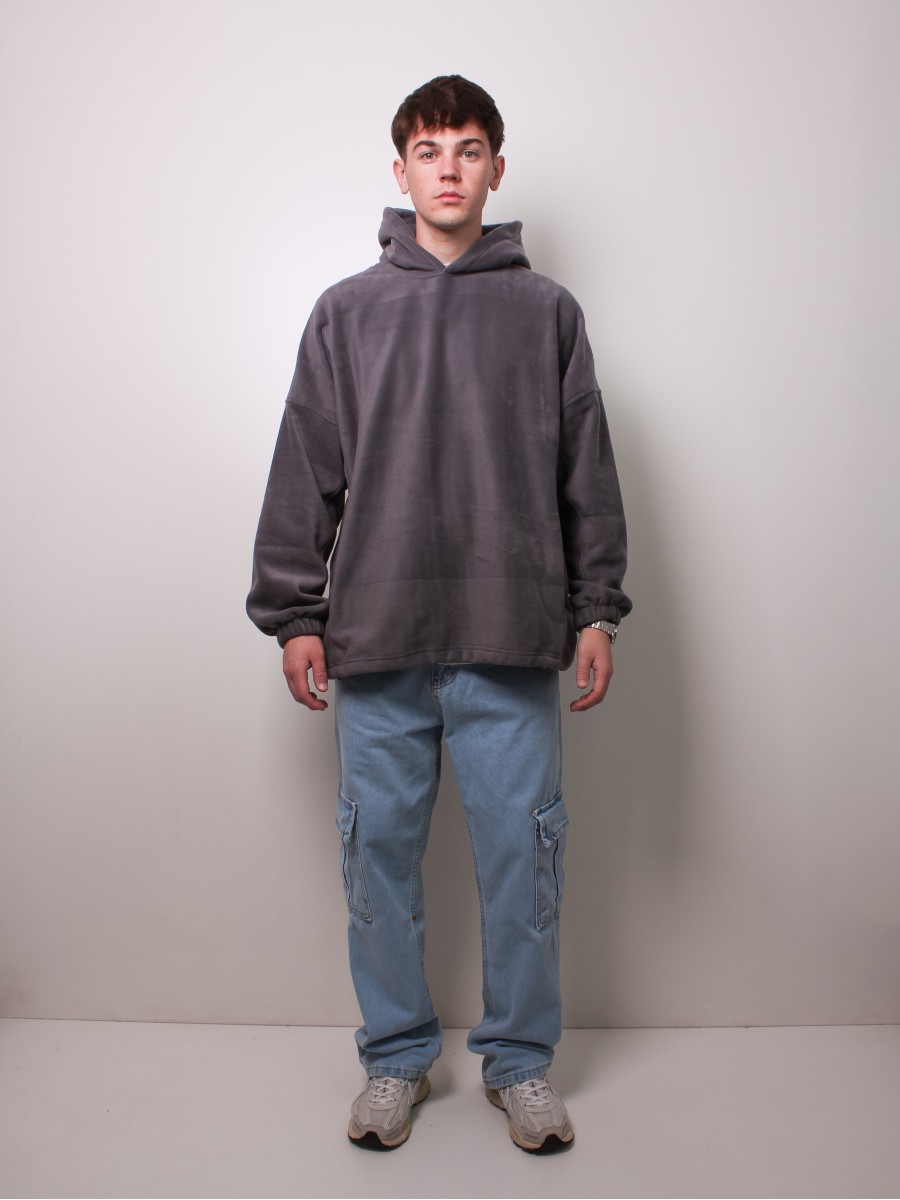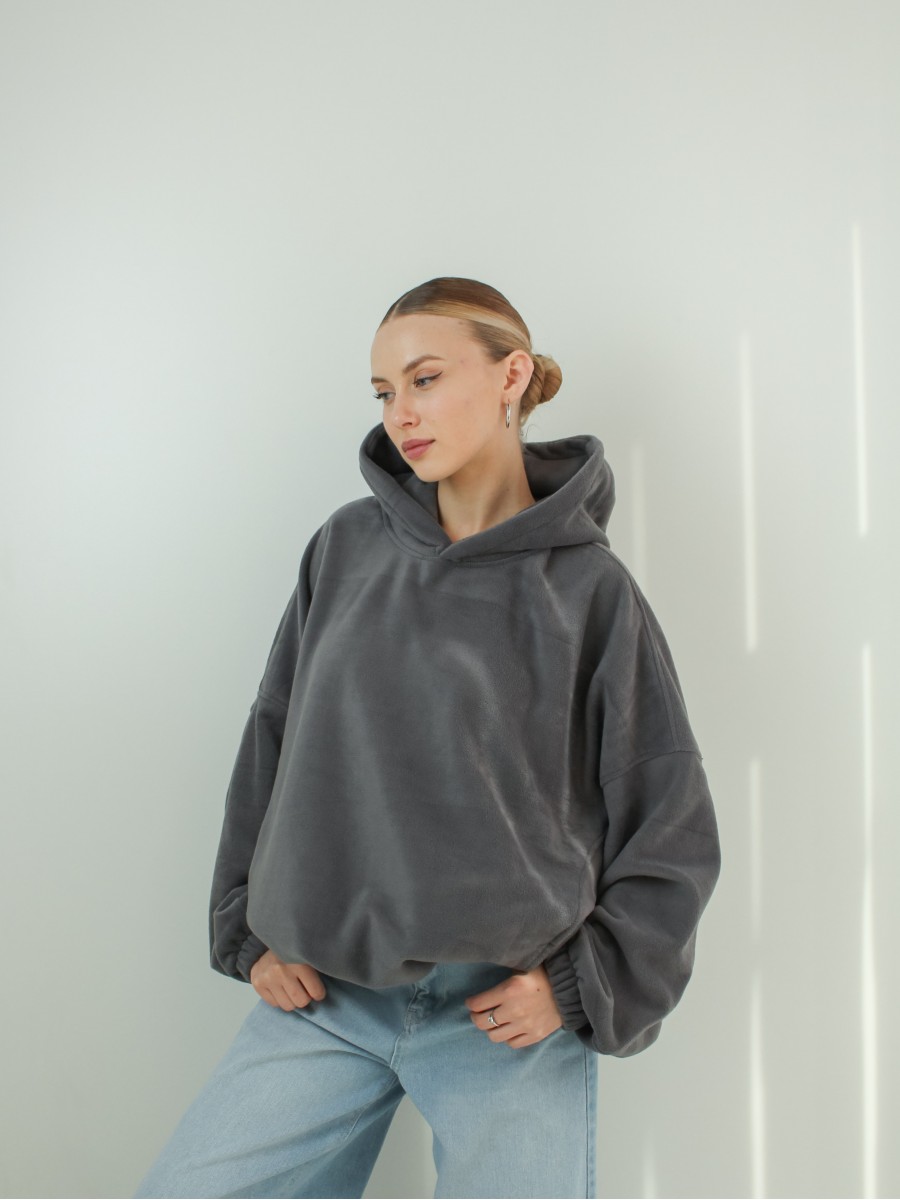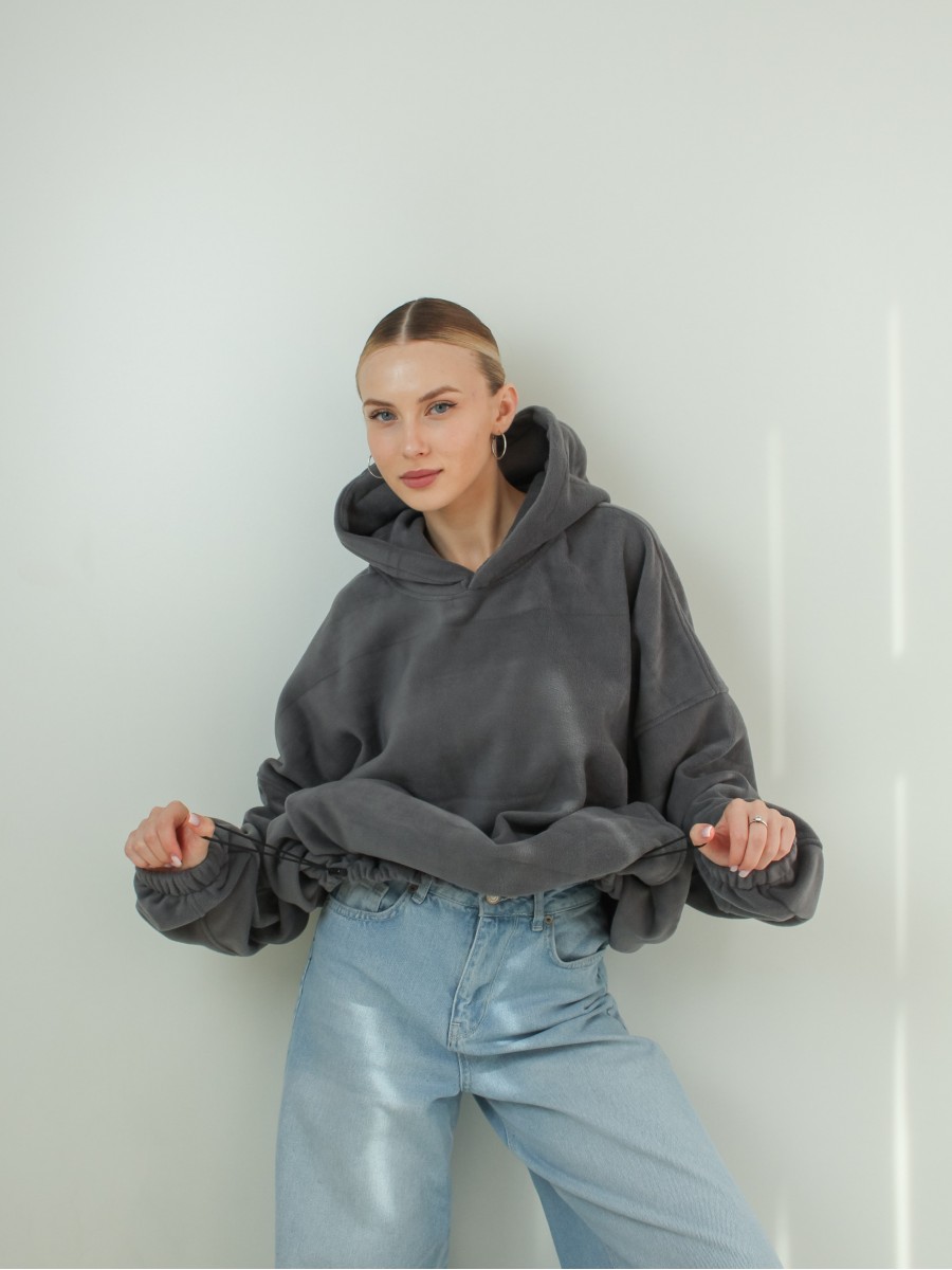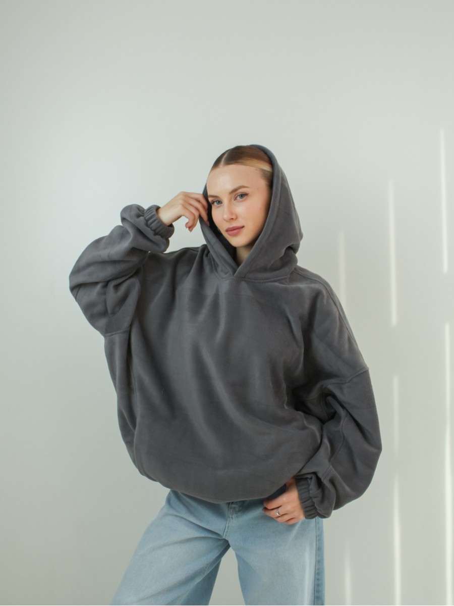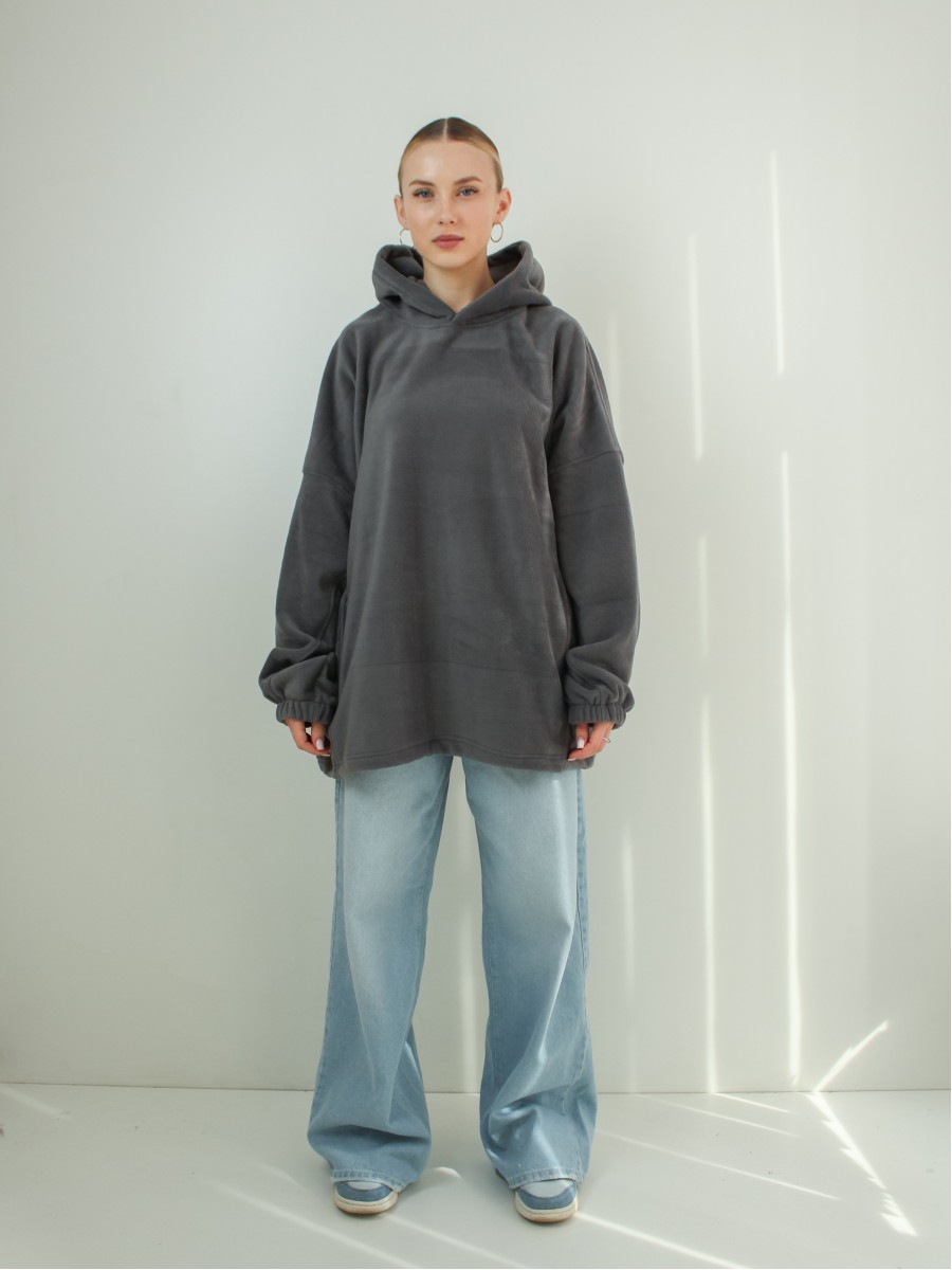 Худі унісекс оверсайз фліс сірий ONE SIZE 10024