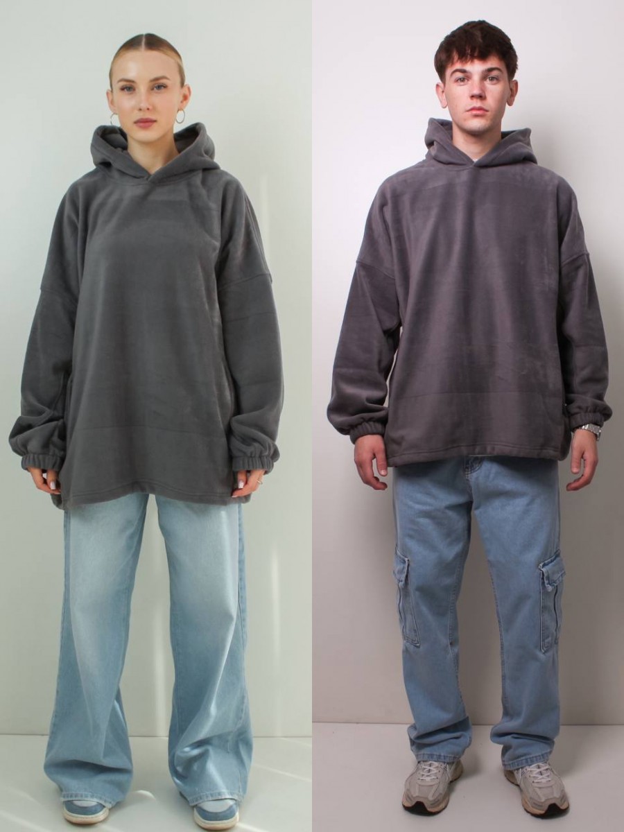 Тепле та надзвичайно затишне худі з флісу в оверсайз крої — must have для холодної пори року. Завдяки розміру ONE SIZE воно ідеально пасує як дівчатам, так і хлопцям, створюючи стильний об’ємний силует. М’який фліс дарує комфорт і тепло, не обмежує рухів та приємно огортає тіло. Худі легко комбінується з джинсами, спортивними штанами чи лосинами, дозволяючи створювати як повсякденні, так і трендові streetstyle-образи.
