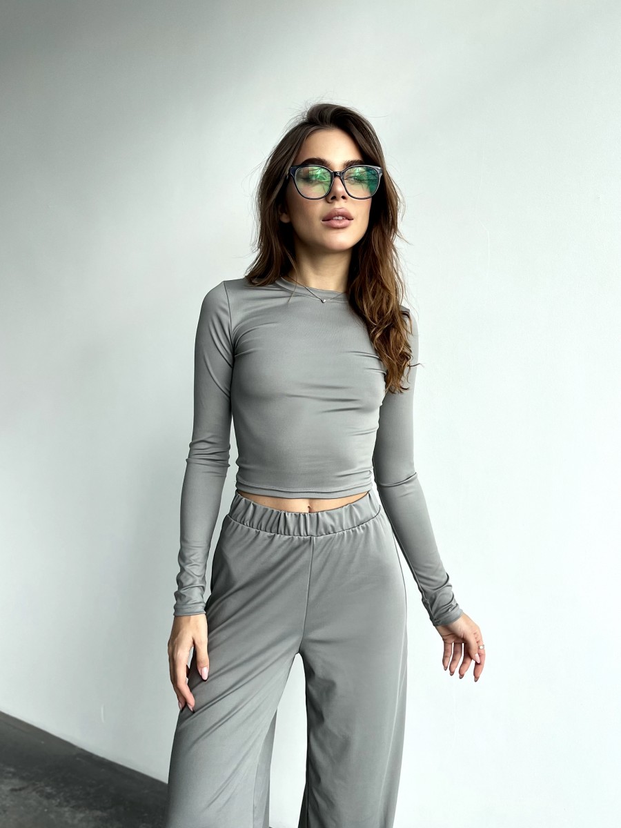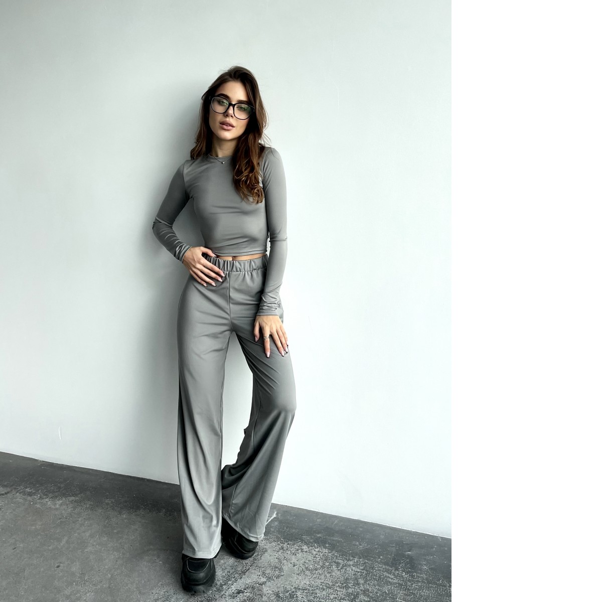 Штани широкого крою додають образу сучасного стилю та легкості. Вони вільно сидять, не обмежуючи рухів, що робить цей костюм універсальним як для повсякденного носіння, так і для особливих випадків.