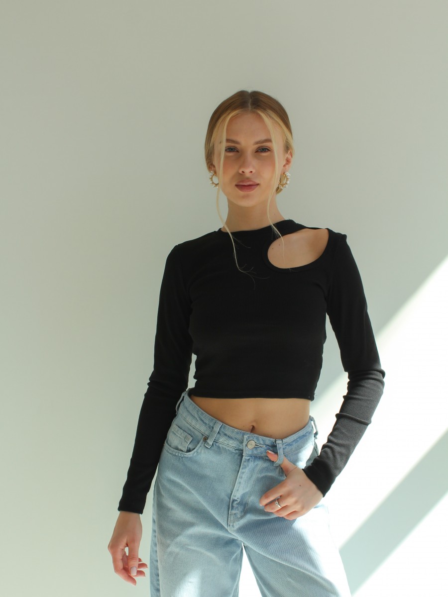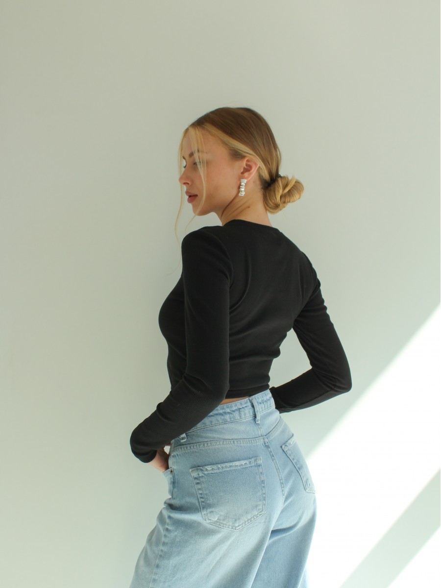 Лонгслів жіночий чорний "капелька" 10358