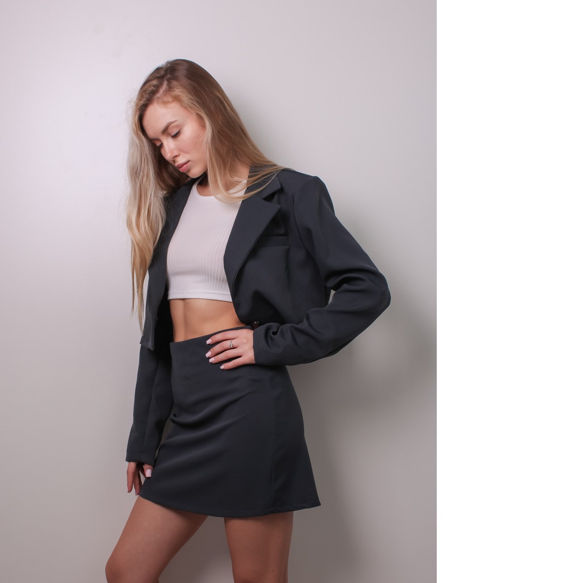 Класична коротка спідниця — це лаконічна модель прямого або злегка приталеного крою, зазвичай довжиною до середини стегна або трохи вище коліна. Вона підкреслює силует, має чіткі лінії та мінімум декору.