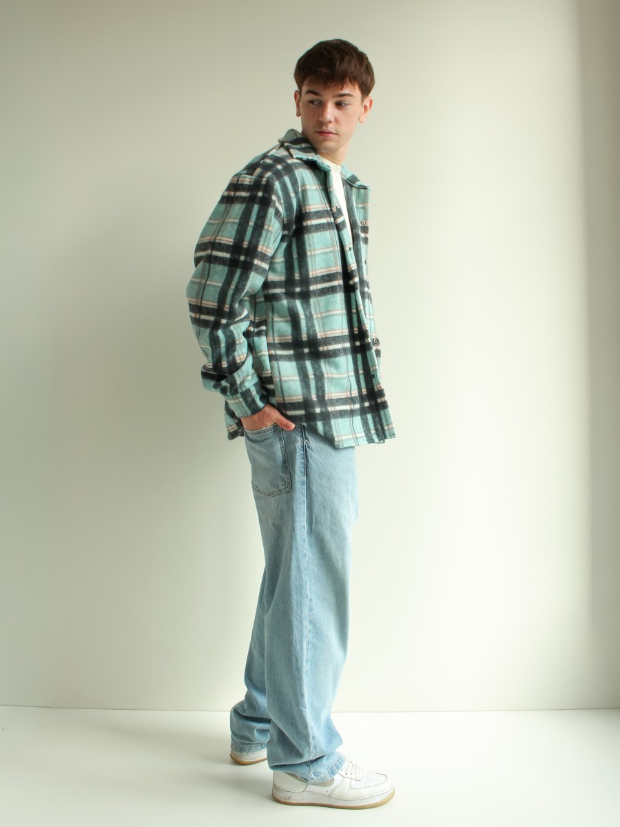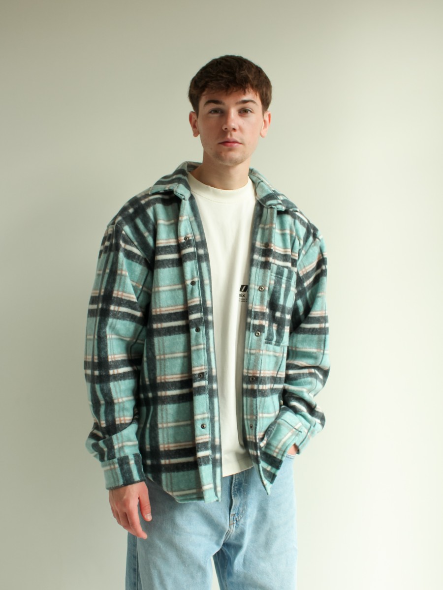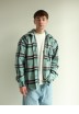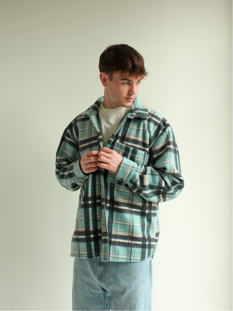 Рубашка в клітинку на флісі чоловіча бірюзово-чорний 10193