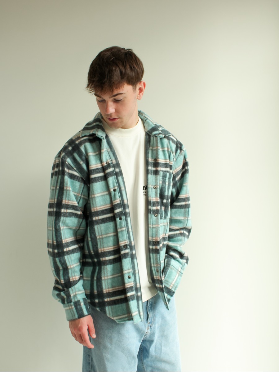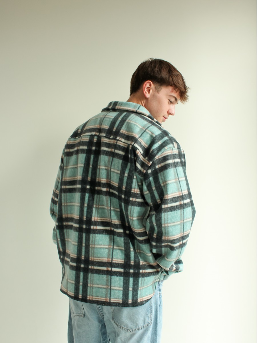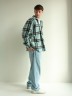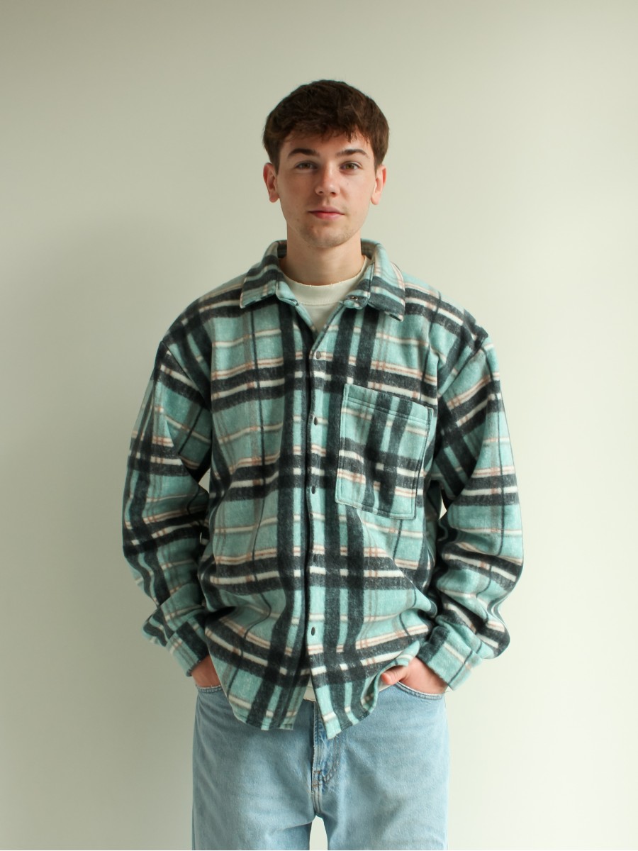 Рубашка в клітинку на флісі чоловіча бірюзово-чорний 10193