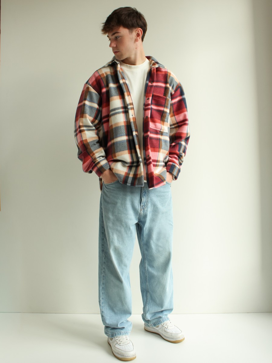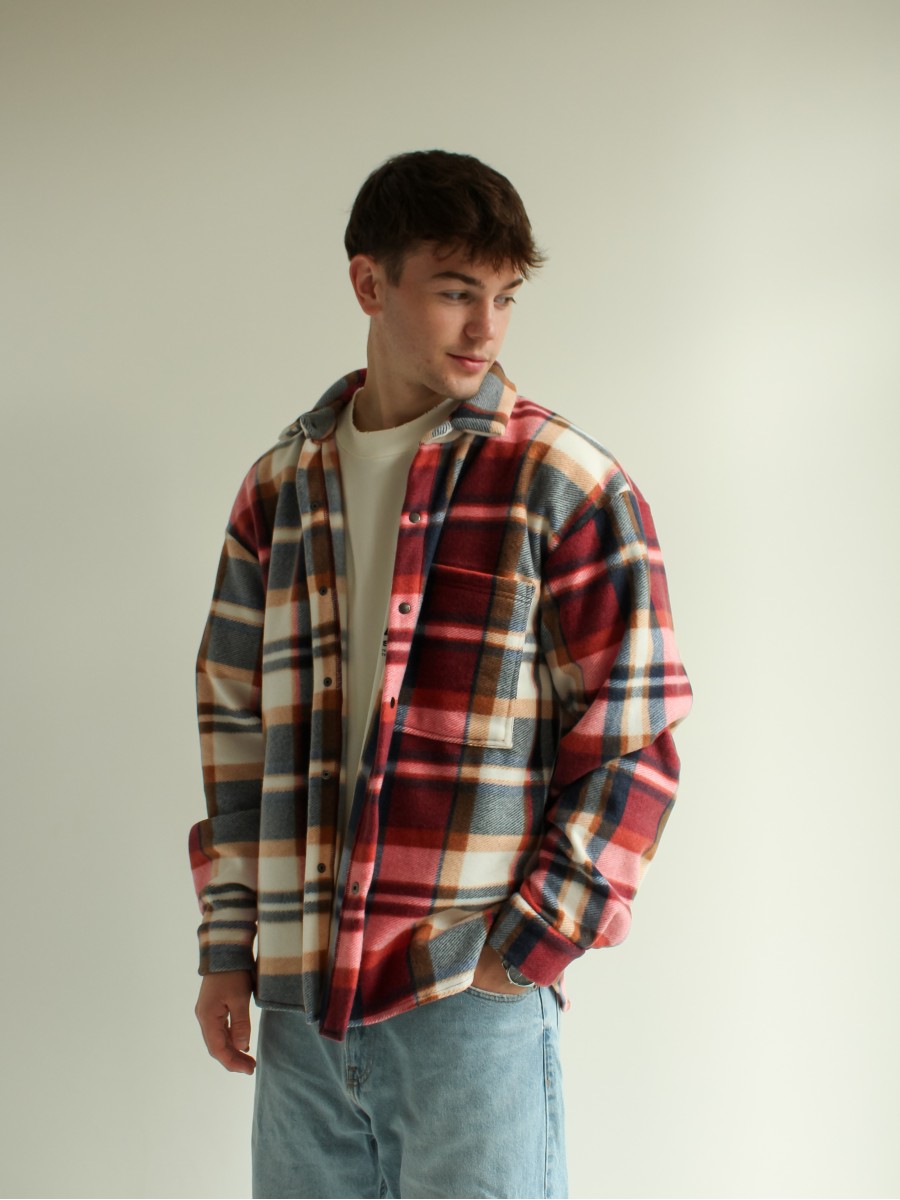 Чоловіча рубашка в клітинку на флісі — це ідеальне поєднання стилю, тепла та комфорту для холодної пори року. Зовнішній шар виконаний із щільної бавовняної тканини з класичним клітчастим візерунком, а внутрішній флісовий підклад забезпечує приємне тепло навіть у прохолодну погоду. Прямий крій, накладні кишені на грудях та застібка на ґудзики додають практичності та універсальності. Її можна носити як самостійну сорочку або як легку куртку — ідеально для повсякденного стилю чи активного відпочинку.