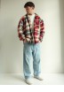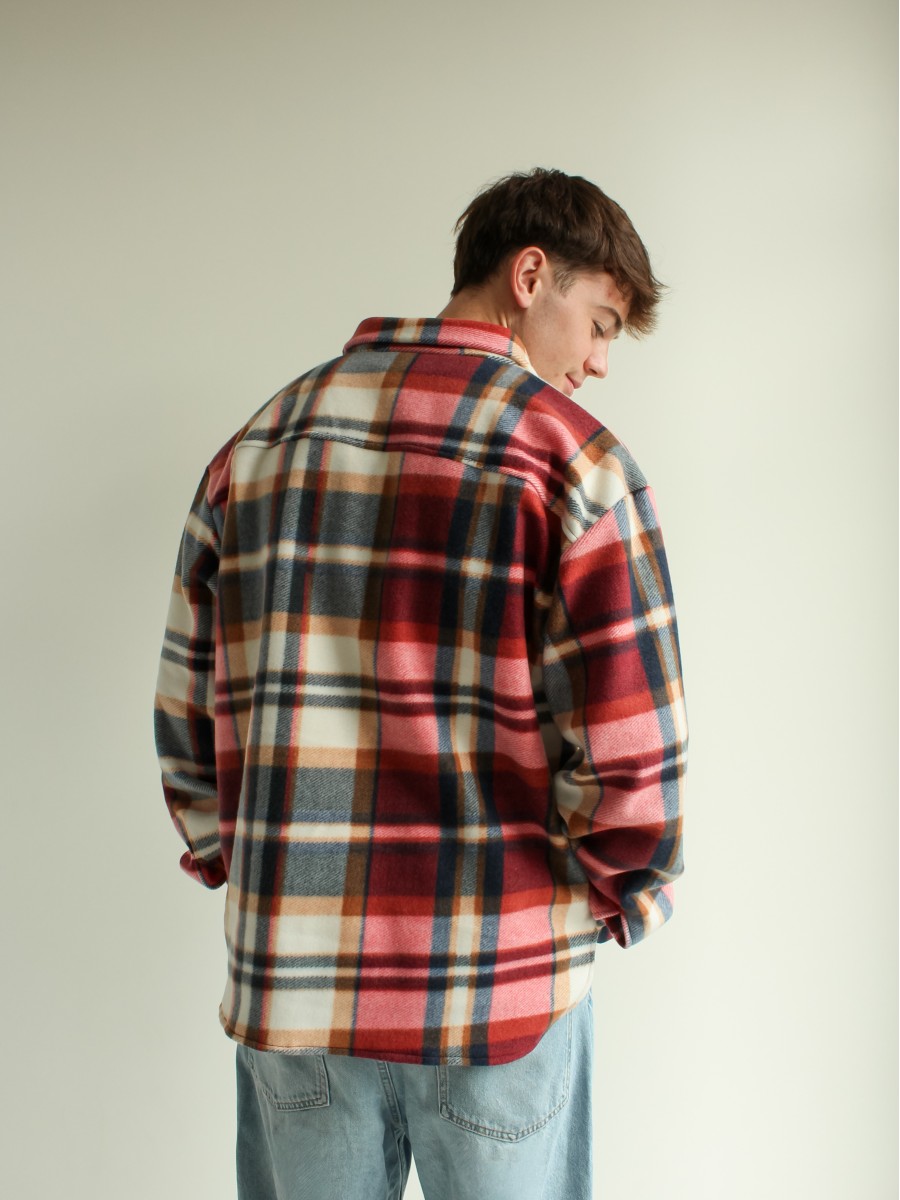 Рубашка в клітинку на флісі чоловіча червоно-бежевий 10193