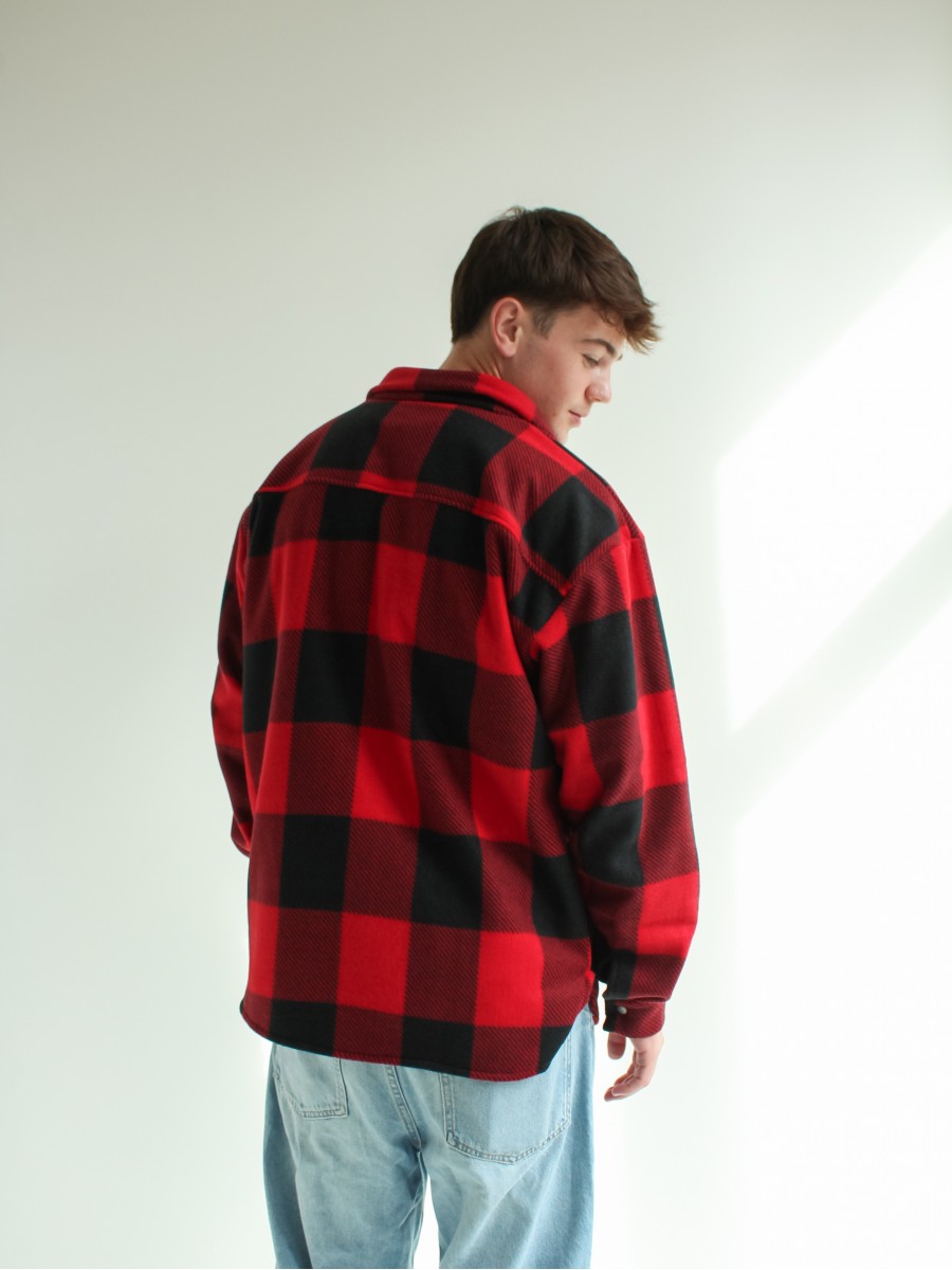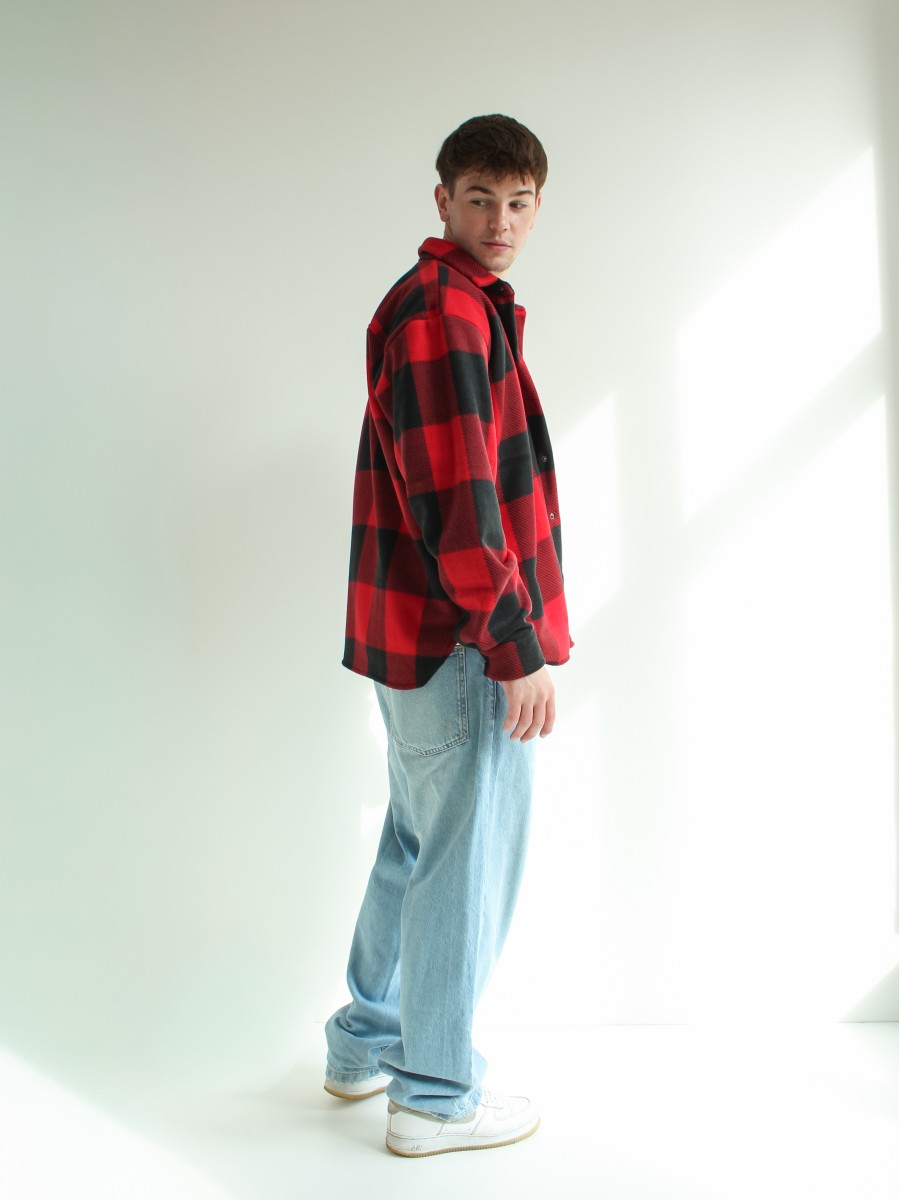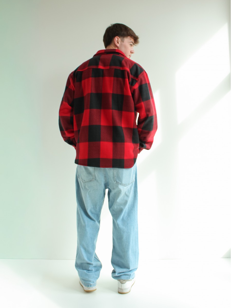 Рубашка в клітинку на флісі чоловіча червоно-чорний 10193