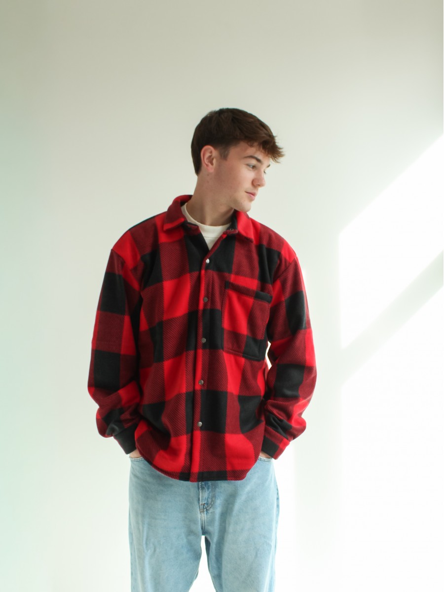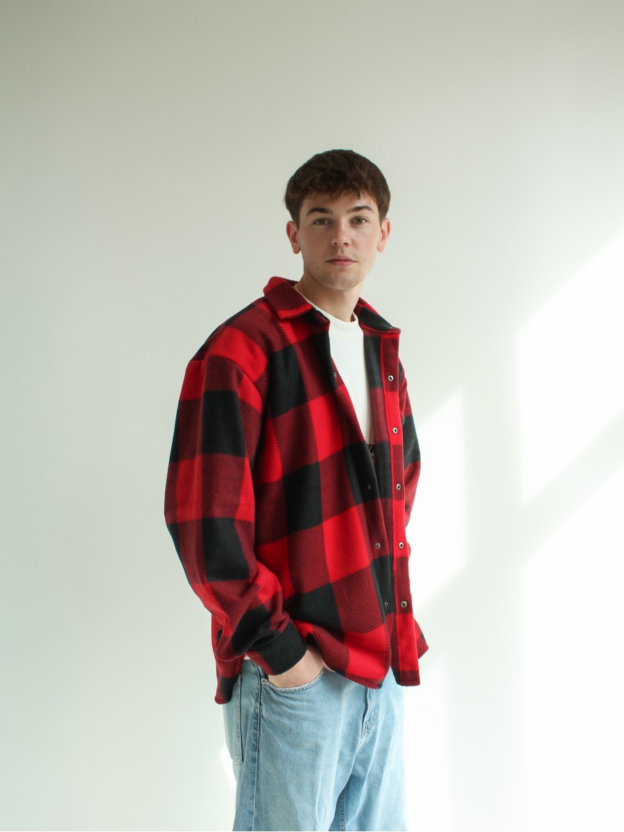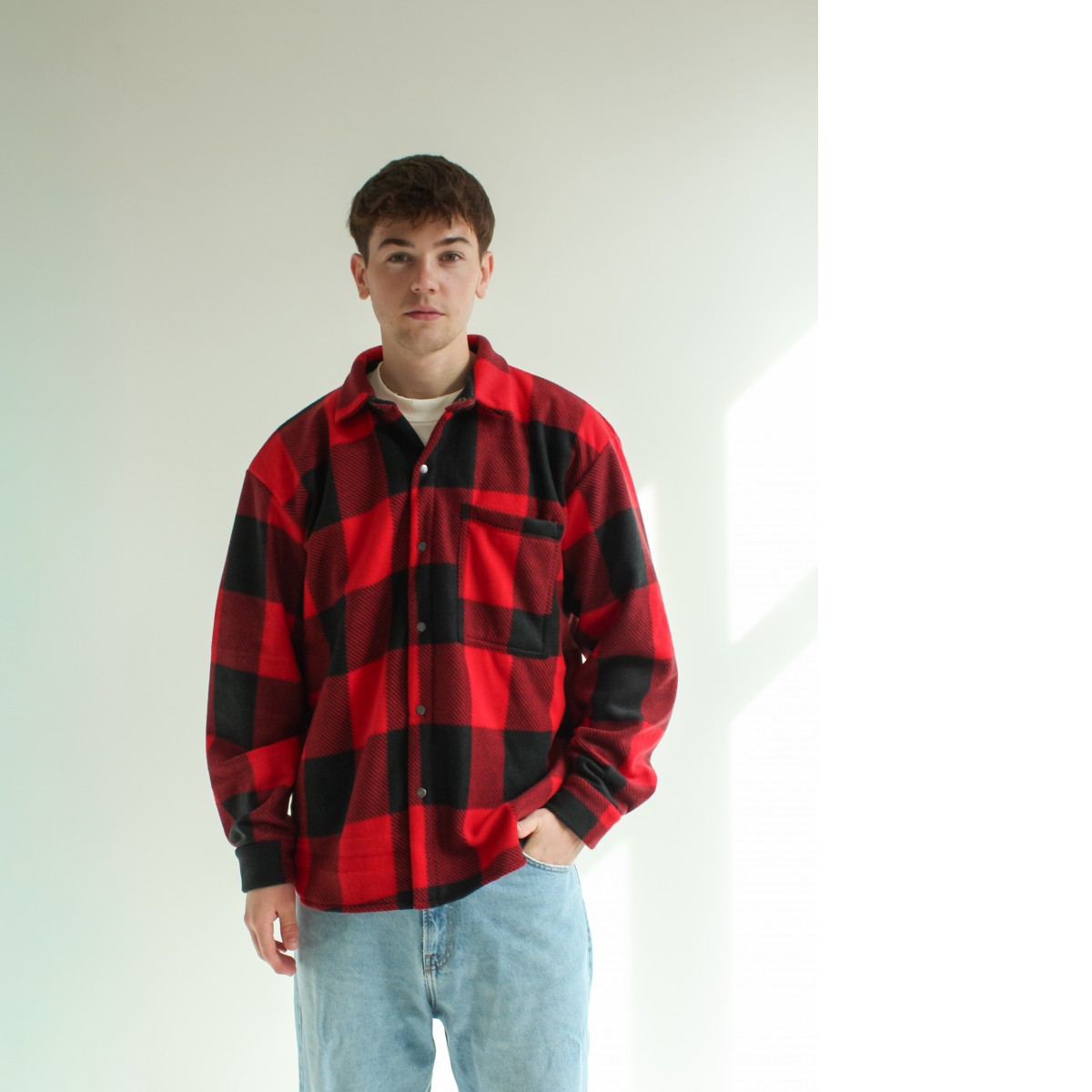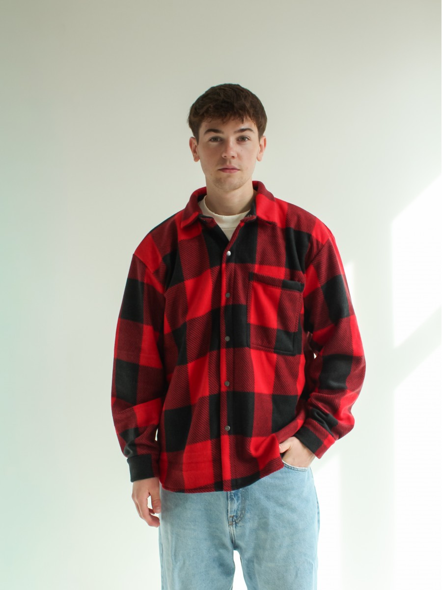 Чоловіча рубашка в клітинку на флісі — це ідеальне поєднання стилю, тепла та комфорту для холодної пори року. Зовнішній шар виконаний із щільної бавовняної тканини з класичним клітчастим візерунком, а внутрішній флісовий підклад забезпечує приємне тепло навіть у прохолодну погоду. Прямий крій, накладні кишені на грудях та застібка на ґудзики додають практичності та універсальності. Її можна носити як самостійну сорочку або як легку куртку — ідеально для повсякденного стилю чи активного відпочинку.