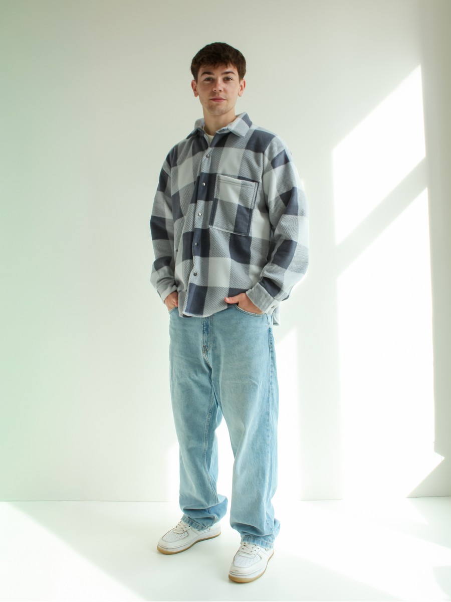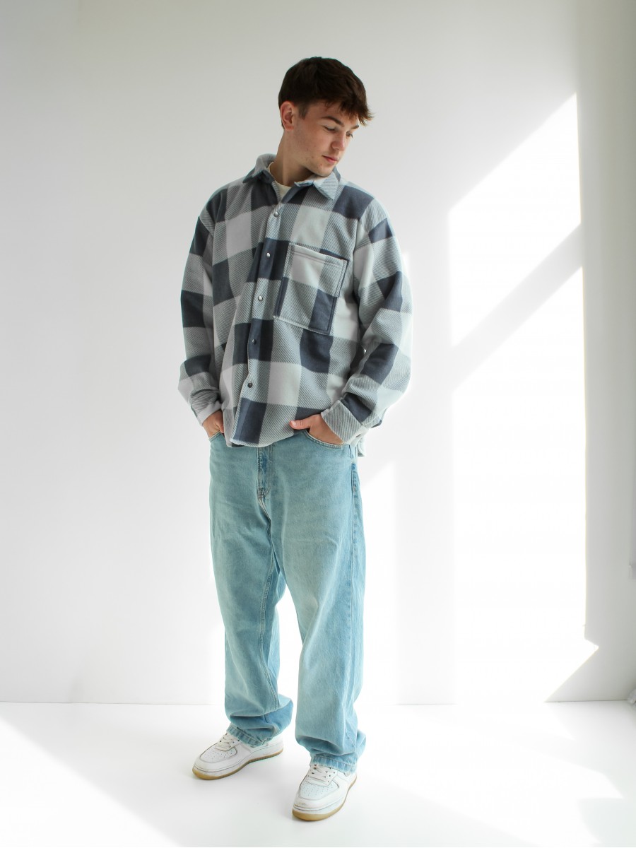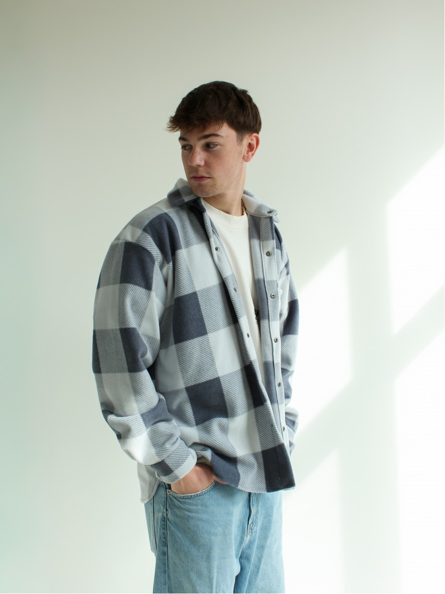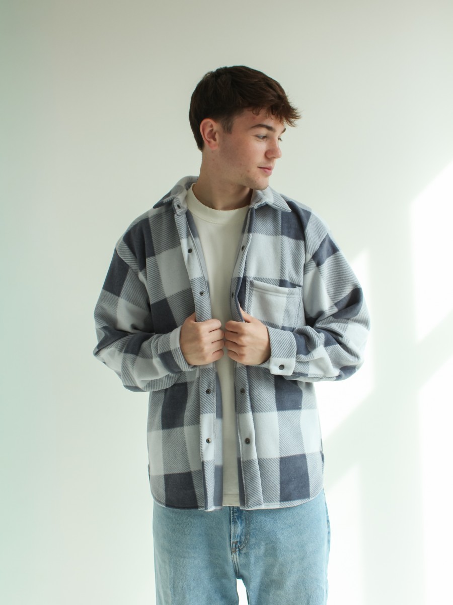 Чоловіча рубашка в клітинку на флісі — це ідеальне поєднання стилю, тепла та комфорту для холодної пори року. Зовнішній шар виконаний із щільної бавовняної тканини з класичним клітчастим візерунком, а внутрішній флісовий підклад забезпечує приємне тепло навіть у прохолодну погоду. Прямий крій, накладні кишені на грудях та застібка на ґудзики додають практичності та універсальності. Її можна носити як самостійну сорочку або як легку куртку — ідеально для повсякденного стилю чи активного відпочинку.