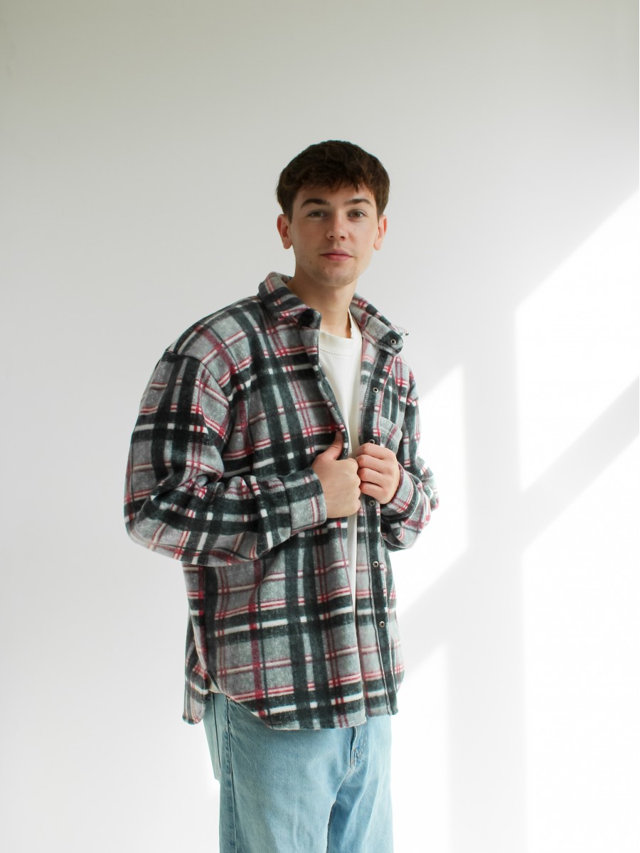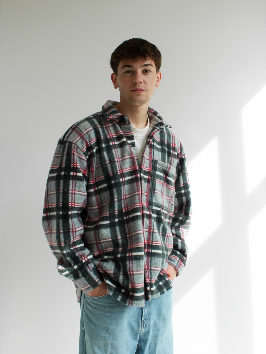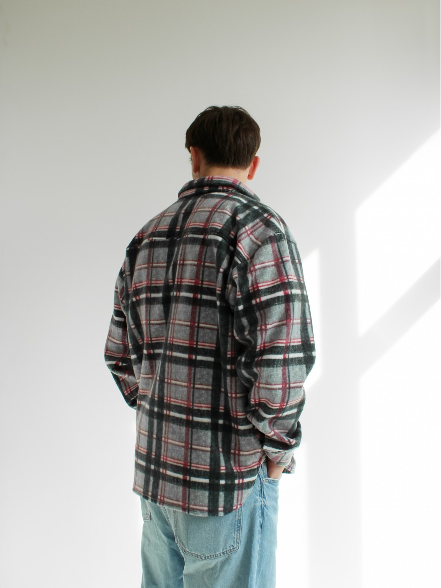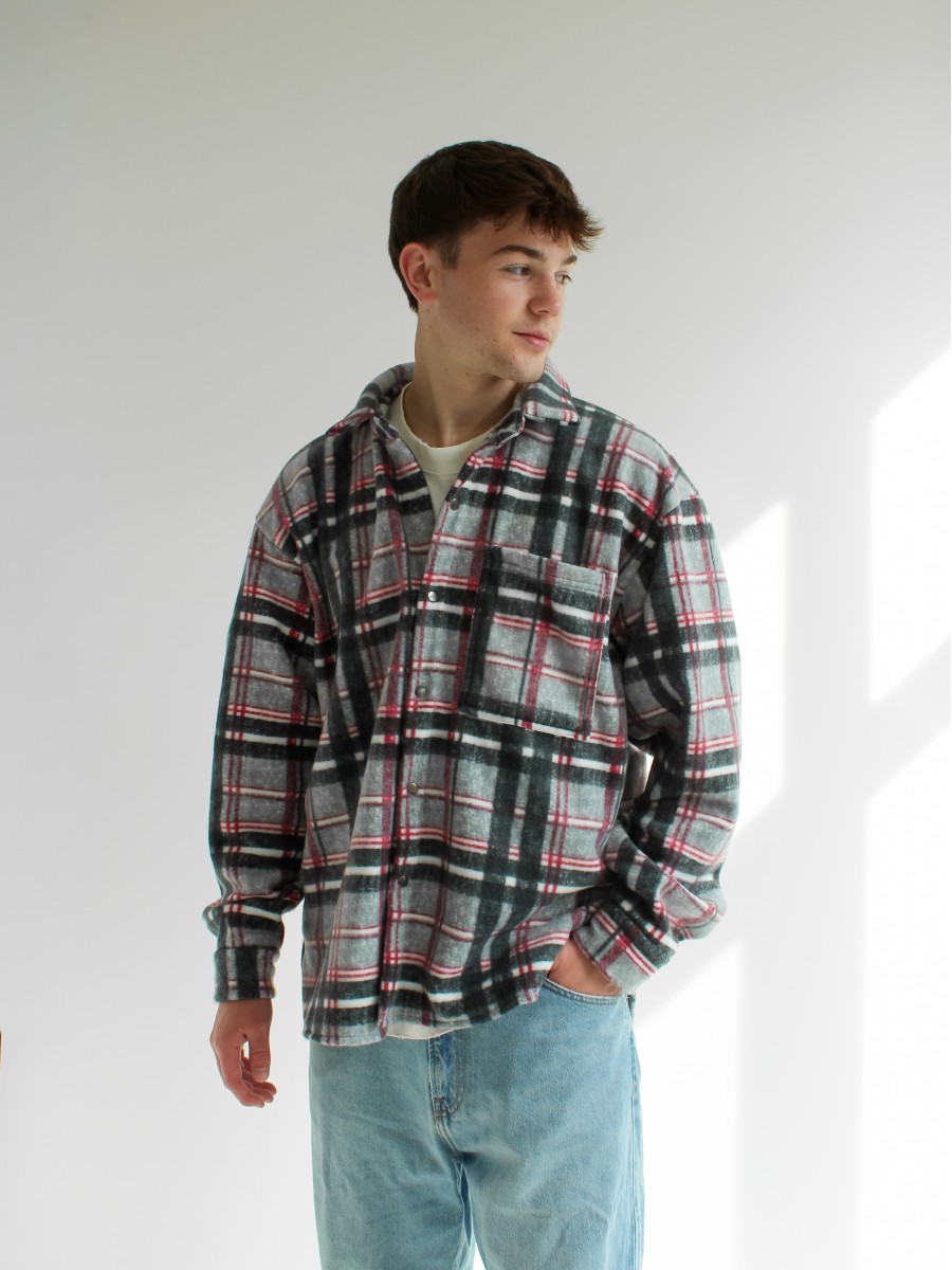 Чоловіча рубашка в клітинку на флісі — це ідеальне поєднання стилю, тепла та комфорту для холодної пори року. Зовнішній шар виконаний із щільної бавовняної тканини з класичним клітчастим візерунком, а внутрішній флісовий підклад забезпечує приємне тепло навіть у прохолодну погоду. Прямий крій, накладні кишені на грудях та застібка на ґудзики додають практичності та універсальності. Її можна носити як самостійну сорочку або як легку куртку — ідеально для повсякденного стилю чи активного відпочинку.