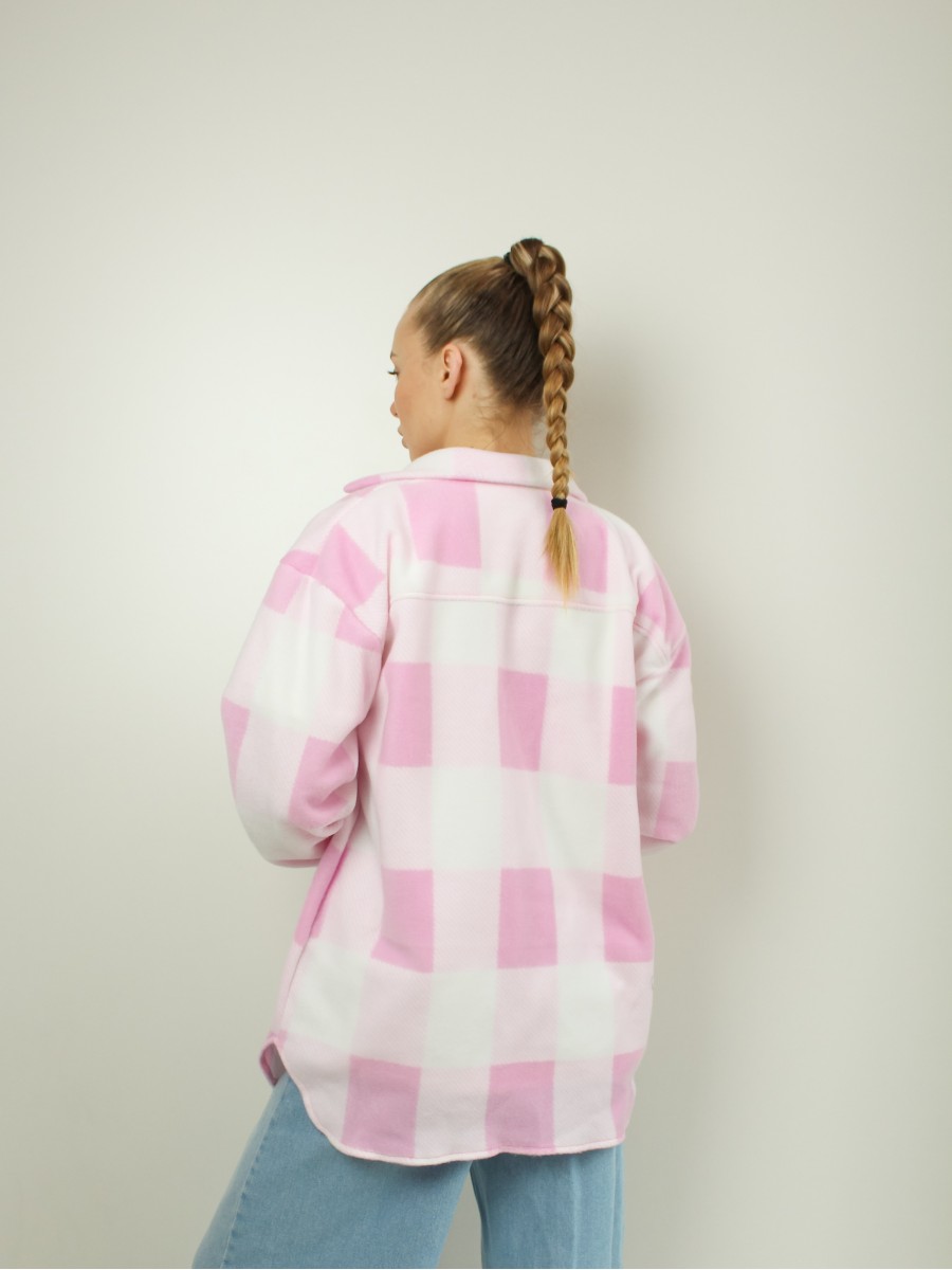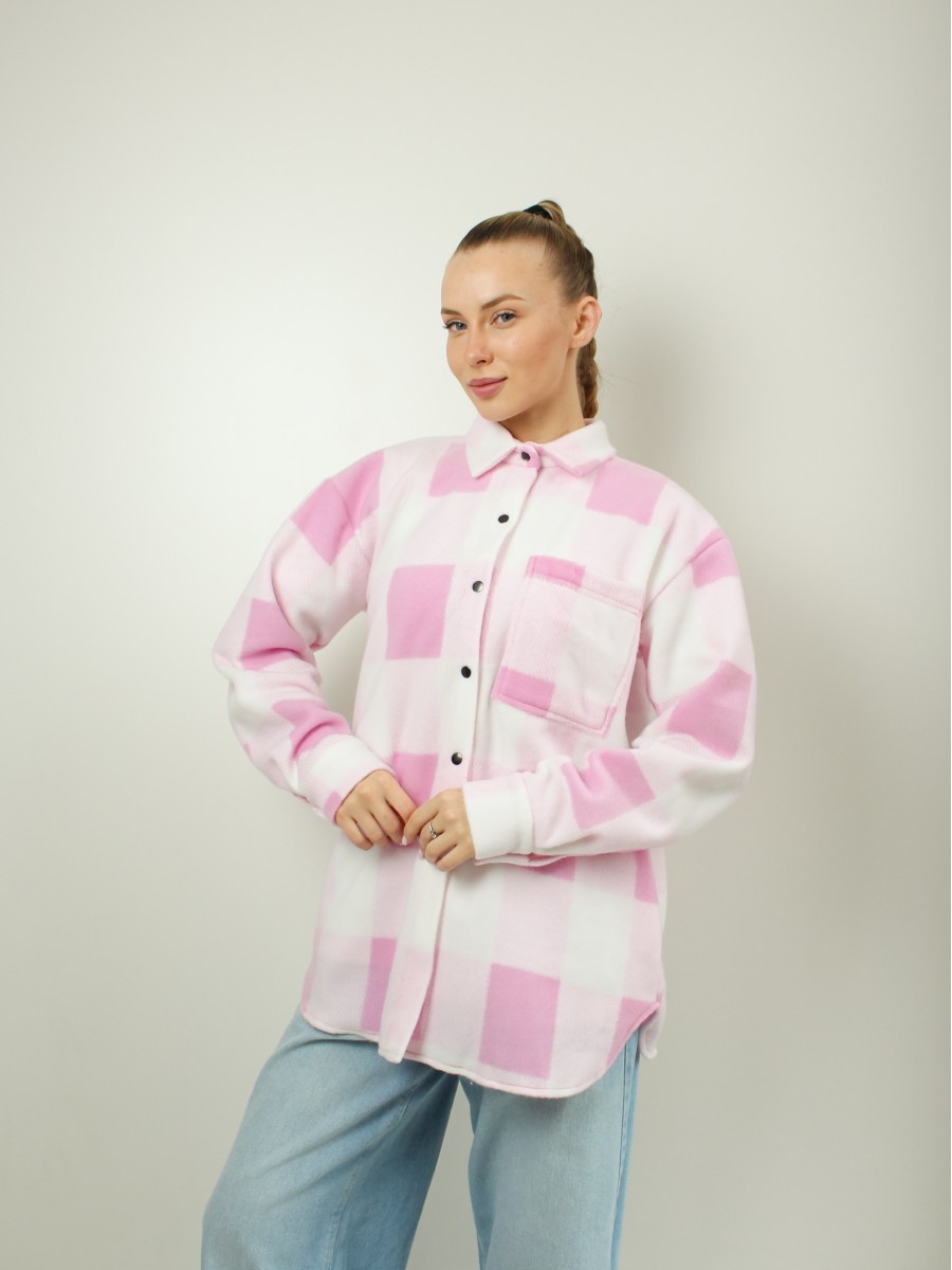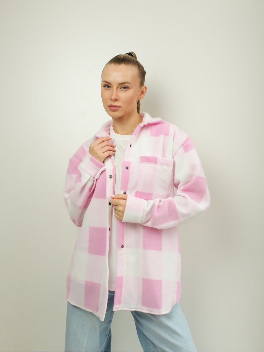 Рубашка в клітинку на флісі жіноча рожево-білий 10192