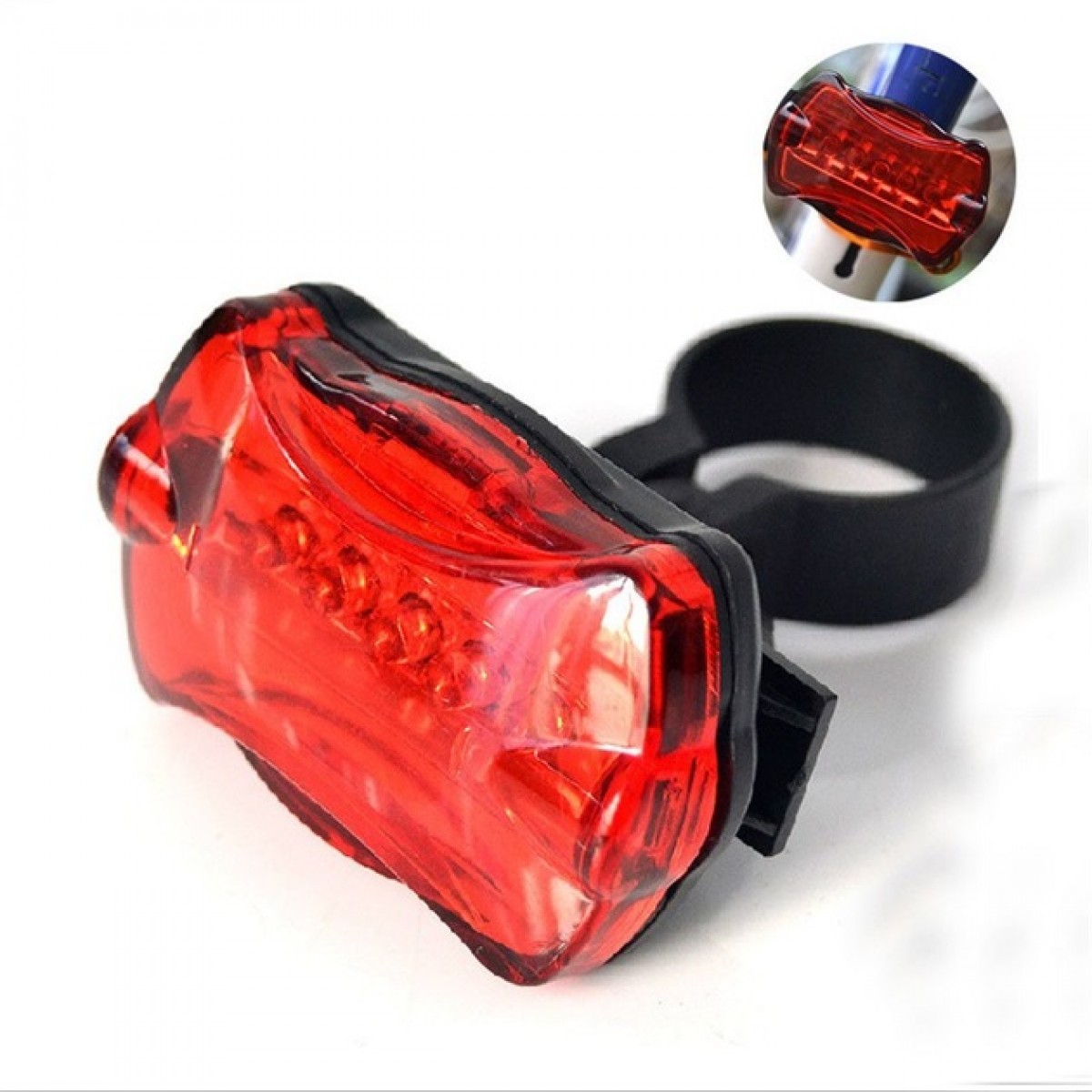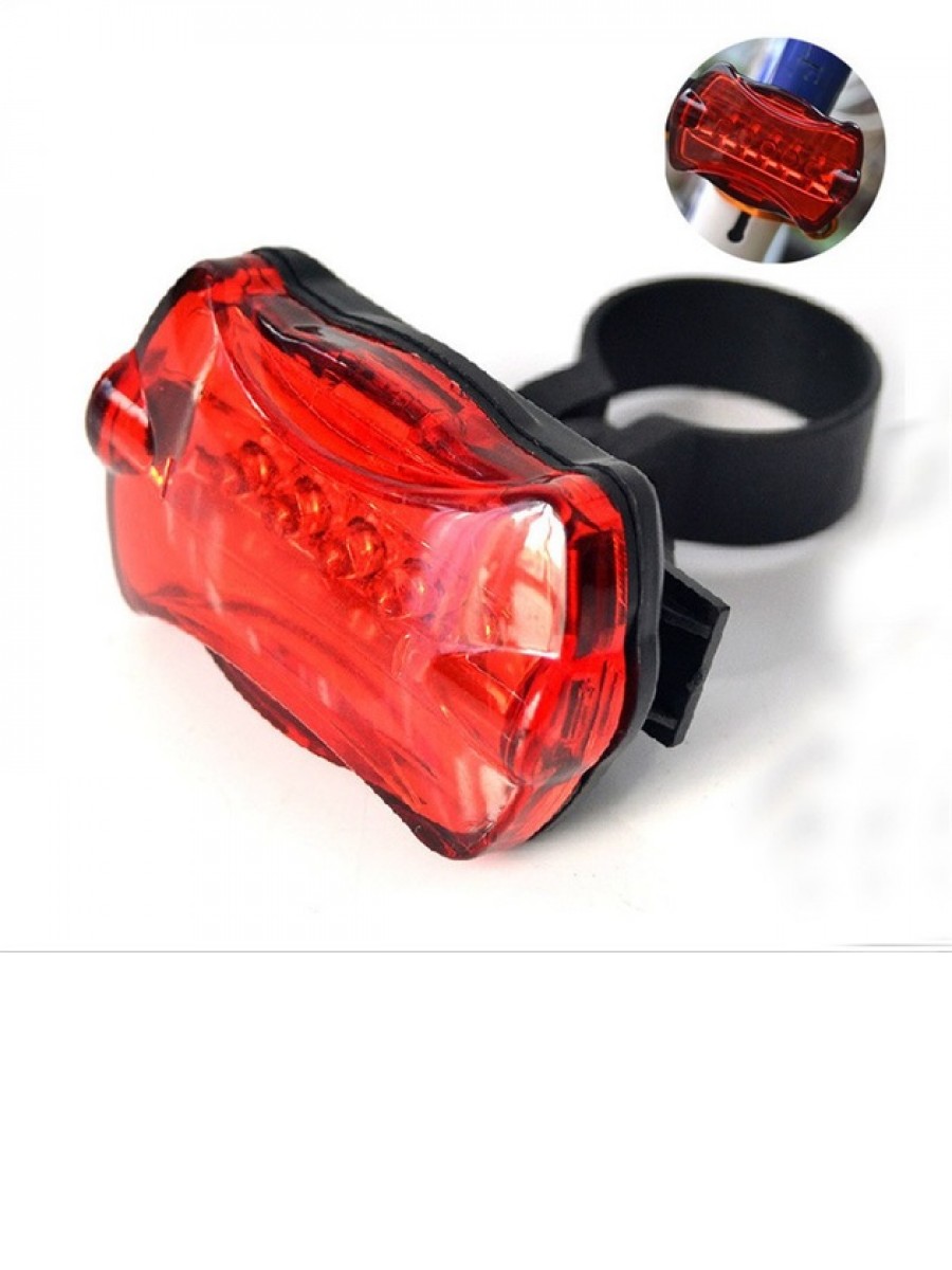 Бюджетна задня стоп фара у пластиковому водонепроникному корпусі з 5-. яскравими світлодіодами, та 7-ма функціями світіння (100% та 6 мигалок). Універсальна клямка з тильного боку фари дозволяє кріпити її на кишені велосипедної сумки та на елементи одягу. Використовується не лише з велосипедом, а й як підсвічування у темний час доби для пішоходів. Кріплення мигалки на підсідельний штир за допомогою кронштейна з функцією швидкого знімання. Живлення від 2-х пальчикових батарей ААА. Колір червоний. Без батарейок. Розмір: 68 х 38 х 30 мм.