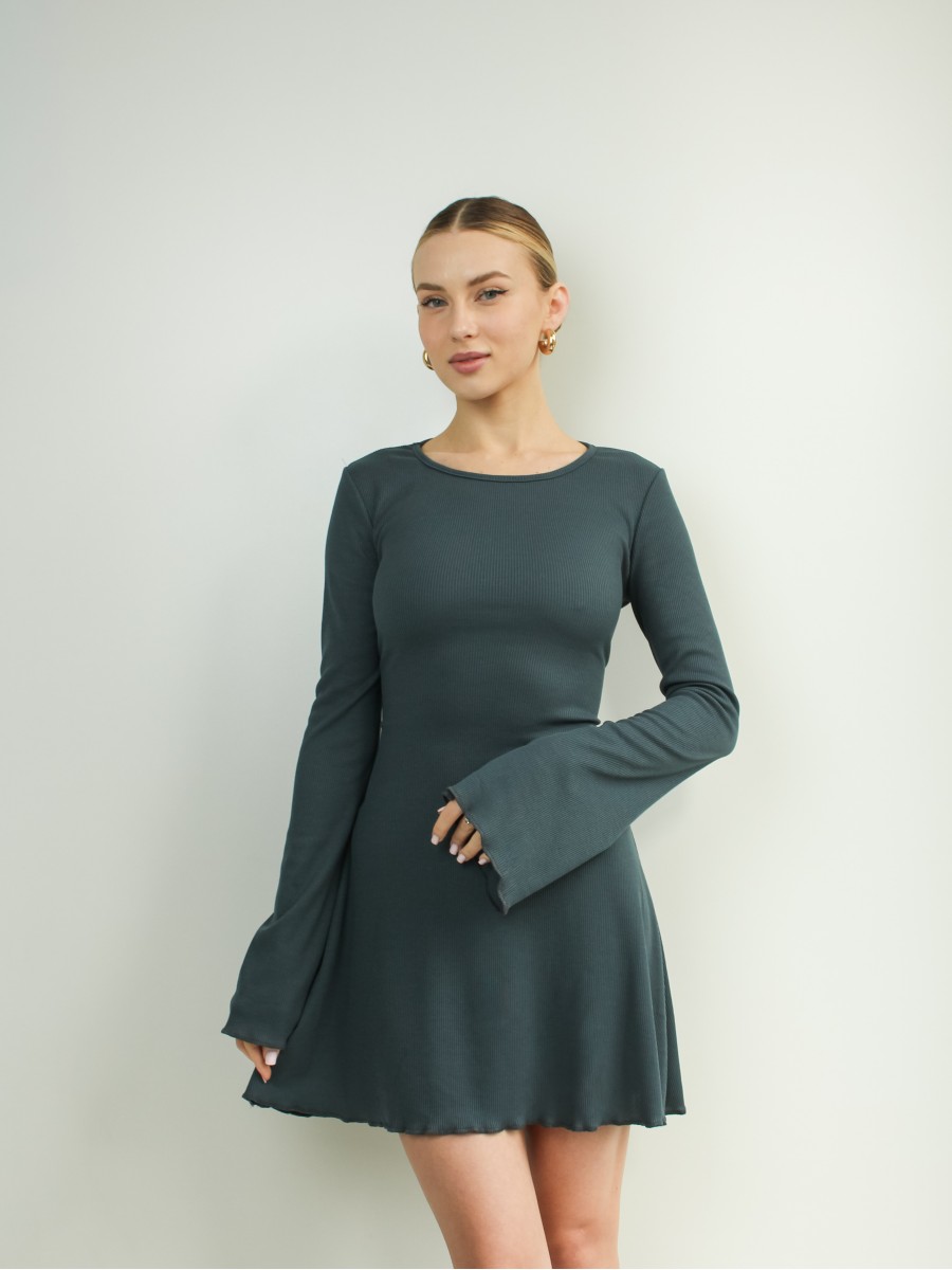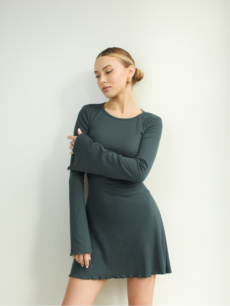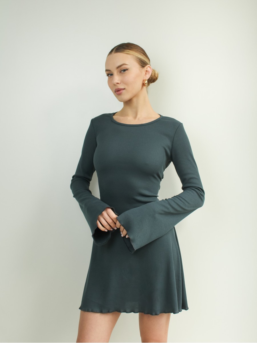 Сукня зі шнурівкою на спині рубчик графіт 10130