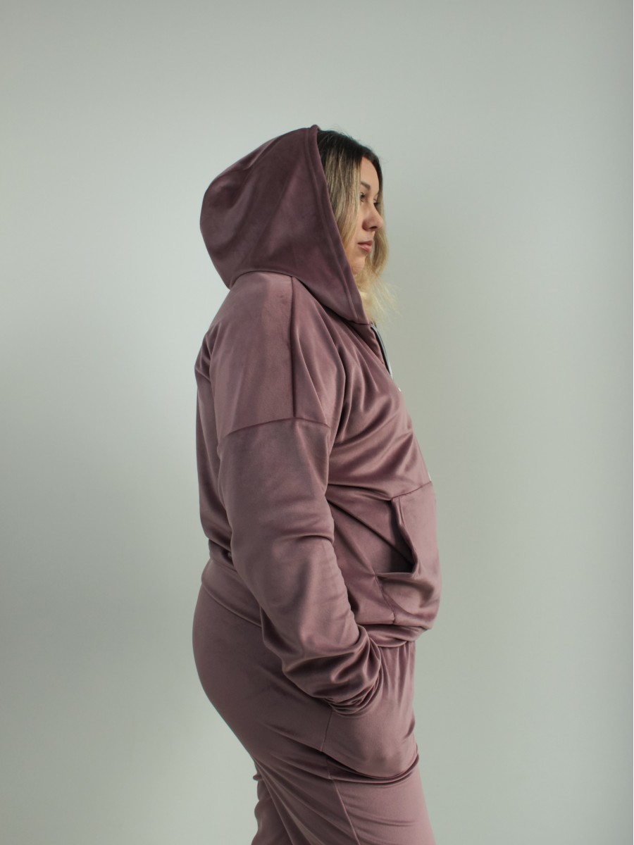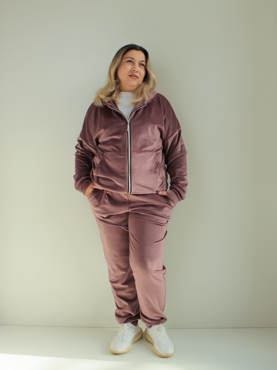 Жіночий велюровий костюм — стильний вибір для тих, хто цінує комфорт і елегантність. Виготовлений з м'якої велюрової тканини, цей костюм дарує приємне відчуття на шкірі, зберігаючи тепло в прохолодні дні. Вишуканий темно-синій колір додає образу натуральної краси та сучасного вигляду, роблячи його ідеальним для будь-яких випадків — від вечірніх прогулянок до зустрічей з друзями. Костюм підкреслює жіночність і виглядає стильно, поєднуючи зручність і розкіш. Додайте елегантності своєму гардеробу з нашим велюровим костюмом!